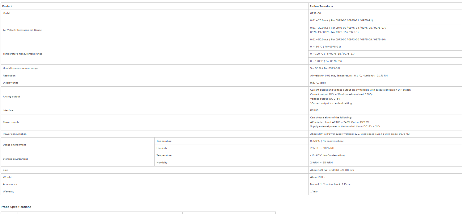 - Improved probe response and accuracy; micro air velocity limit of 0.01 m/