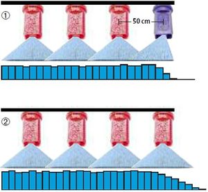 In connection with AirMix 110° flat fan nozzles AirMix OC off-centre nozzles can be used as end nozzles for a sharp-edged differentation of the spraying rods. Therefore instead of an einer AirMix 110° an AirMix OC is used as end nozzle each time.