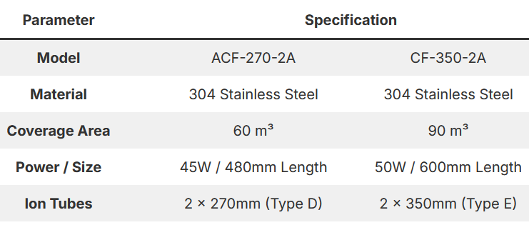 Advanced Oxygen Ion Technology for Large-Scale Deodorization. The Airsafer ACF Series (Model 270-2A / 350-2A) is built for tough environments like public restrooms, garbage rooms, and storage areas. Unlike sprays that mask smells, our Super Oxygen Ion technology actively decomposes odors and kills bacteria at the molecular level. Housed in 1.0mm 304 Mirror Stainless Steel, this unit is corrosion-resistant, moisture-proof, and designed to run 24/7 with minimal maintenance.