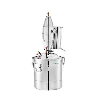 Alcohol Distiller LAD-A10 has a capacity of 30 L and can hold up to 7.5 kilograms of raw material for processing. The distiller is made from food-grade 304 stainless steel, ensuring safety, durability, and resistance to corrosion, it features an advanced rectification tower with ceramic balls that enhances the filtration process for higher purity output. Our alcohol distiller is compatible with various heating sources, including gas stoves, coal stoves, electric ceramic stoves, and firewood, making it versatile and easy to use in different settings.