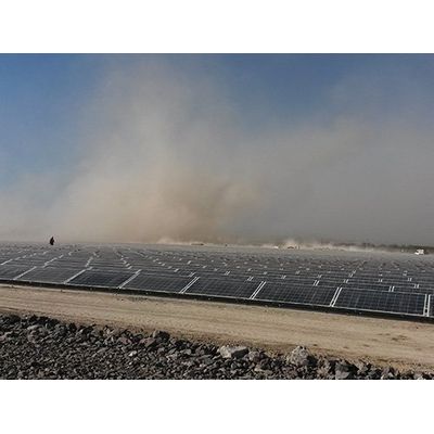 The patented Alion Mounting System uses an unfolding racking structure and slip-formed track ballast for fast field construction on difficult sites. The system is ballasted to ease construction for sites with difficult geotechnical conditions, e.g. very hard or very soft ground, The track ballast enables the Alion SPOT cleaning system that delivers low-cost, cleaning with water-carrying automated vehicles, Panels arrive at site with racking attached onto their backs in a folded position. They are quickly unfolded and installed for fast and simple construction.