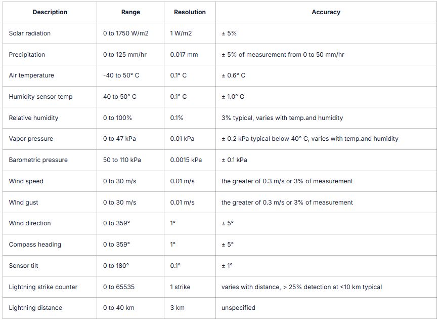 The ATMOS 41 is a compact, all-in-one weather station measuring 12 weather variables, including temperature, humidity, and solar radiation, with the flexibility to add more sensors. Measures 12 weather variables including: air temperature,relative humidity, vapor pressure, barometric pressure, wind speed and direction, solar radiation, precipitation, lightning.