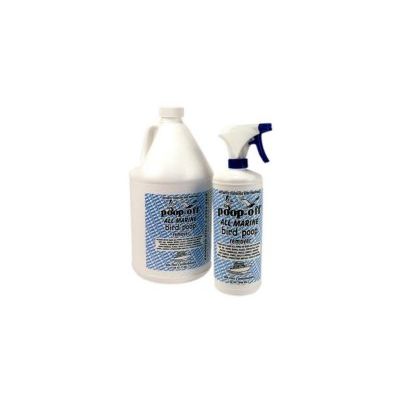 Poop-Off All Marine Bird Poop Remover is a biodegradable surface and fabric cleaner that quickly and safely breaks down and dissolves bird droppings and fish messes. Poop Off uses naturally occurring, active enzymes and biodegradable cleaners. It does not use solvents, orange extracts, detergents, alcohol or bleach.