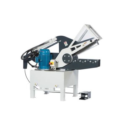 This maintenance and operator friendly shear is equipped with a mechanically adjustable hold-down clamp in combination with a safety guard over the cutting head. The hold down clamp prevents material from kicking back and therefore guarantees maximum operator safety.