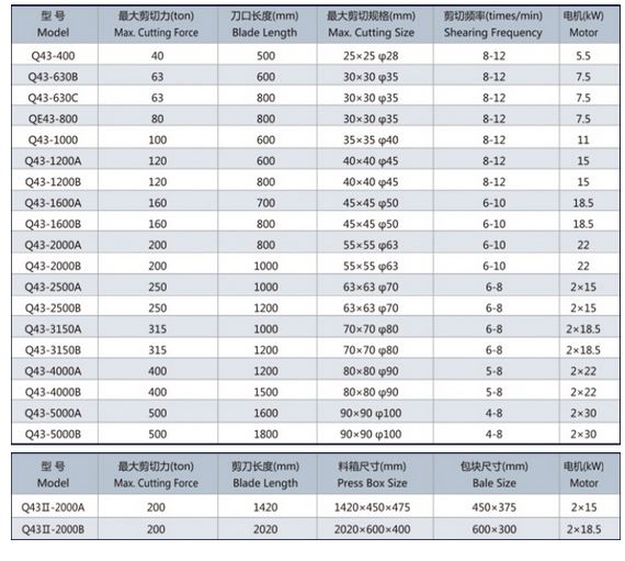 Q43 series crocodile hydraulic shears are suitable for metal recycling processing plants, scrap car dismantling plants, smelting and foundry industries, to perform cold shearing of various steel and metal structural parts and process them into qualified charge.