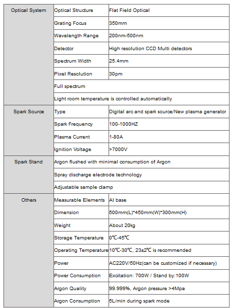 CX-9000 Optical emission spectrometry (OES) is a fast, simple and cost-effective analytical technique used for elemental analysis of solid aluminum samples. It is used in several fields ranging from production to recycling and from foundries to service laboratories.CX-9000 is a high-performances, portable OES spectrometer for analysis of aluminum.