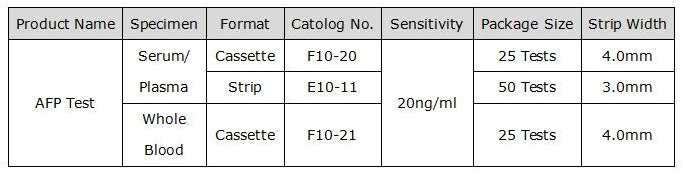 INTENDED USE:AFP Test is designed for the rapid qualitative determination of AFP in whole blood, serum or plasma specimens to aid in the diagnosis of Hepatocelluar Carcinoma or fetal open neural tube defects.