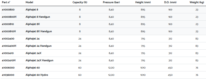 - vibration system for the use of any inert material, even very fine (only for the Alphajet 8 model)