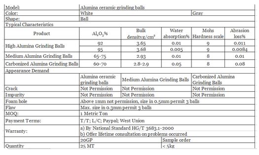 High wear-resistance Alumina ceramic grinding balls wear-resistant is higher than the common alumina balls. When it is working, the ball wont pollute the grinding materials, so it can keep the purity and improve the stability of grinded materials especially the ceramic glaze.b)High densityThe high density, high hardness and the high grinding characters save the grinding time, enlarge the smashing room. So it can improve the grinding efficiency. Alumina ceramic grinding balls have high hardness, low loss, good normalizing property and good corrosion resistance. Resistance, etc. They are glazes, ideal and efficient grinding media for car bodies.Materials, chemical powder and mineral powder