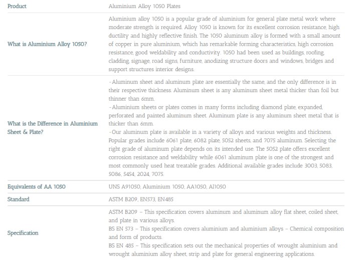 1 More Than 3 Decades of Experience in Manufacture, Stock & Supply of 1050 Aluminium Plates