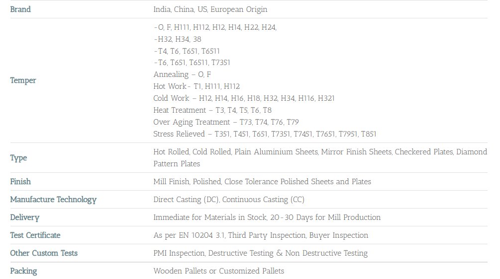 6 Complete Traceability for Aluminium 1050 Plates - There will be Complete Marking on Aluminium Plates, and the Details can be co-related to the Test Certificates.