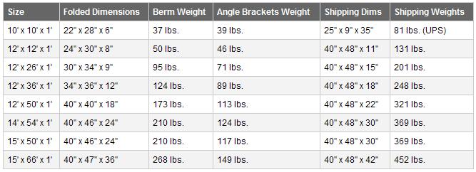 Husky® Aluminum Angle Berms are easy to use with minimal set up time. The benefit to our angle berms is by having separate aluminum angle pieces the berm liner itself is lighter to handle. This means less manpower to handle the same size berm in a one piece construction. The angle brackets come in their own storage bag as well as the berm liner making transport much easier for a smaller crew. Two people can set up a 12` x 50` berm in less than 10 minutes. End wall tear down for ingress is one person less than one minute.