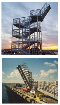 Hallsten Boarding Systems are fabricated of high strength, marine aluminum alloy. All assembly is by Gas Metal Arc Welding using the latest techniques in welding technology. Wherever possible, automatic welding processes are employed to assure high quality construction. The welding assembly and the inherit properties of aluminum provide a gangway structure which is maintenance free and which will retain a new appearance through years of service.