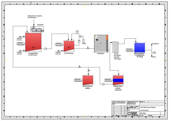 General task requirements for systems treating separating agents from the aluminium die-cast: Minimization of disposal costs, High quality distillate with which the separating agents can be used again or discharged.