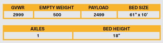 All fabricated lightweight aluminum construction. Stake pockets on each side. Slot tie downs on the sides and front of the trailer. Lightweight aluminum ramp. Dexter EZ Lube torsion axle. 205/75R15 Load range C Radial tires. 15" black machined aluminum wheels. 2" fixed zinc plated coupler. Zinc plated safety chains. Surface mounted LED oval stop/tail/turn lights, marker/reflector LED clearance and marker lights. 4-pin electrical harness plug. Straight tongue.