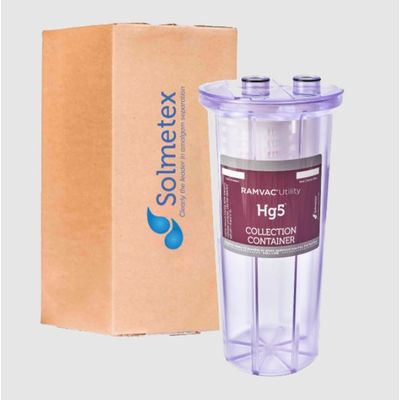 Collection container must be replaced when solids reach the full line or every 12 months, whichever occurs first. Enroll in the Solmetex Compliance Program for auto-delivery of collection containers. Contains one (1) Ramvac Hg5 Collection Container and recycling materials. Only compatible with the Ramvac Hg5 (Legacy) Amalgam Separator. Collection container must be replaced when solids reach the full line or every 12 months, whichever occurs first.