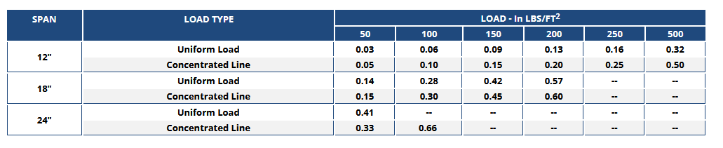 - Engineering Properties Per Foot of Width; A = .68 in2 I = .02 in4 S = .08 in3