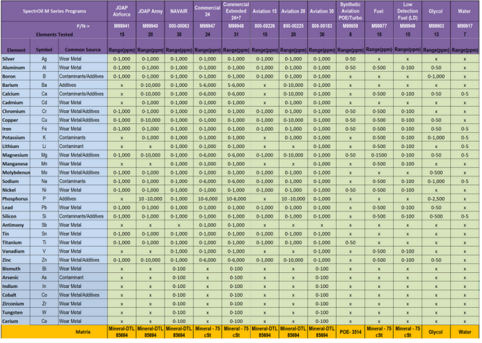 The SpectrOil family of elemental analysis spectrometers consists of the SpectrOil M/C-W for commercial oil analysis, the SpectrOil M/N-W for military applications, SpectrOil M/F for Gas Turbine and Diesel engine fuel analysis and the SpectrOil M/F-LD with lower detection limits for alkaline metals and V for GE gas turbines. All versions of the SpectrOil M family are identical in hardware and differ only in their application and the way they are calibrated.