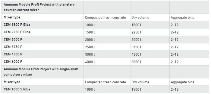 For medium to large concrete outputs in the concrete ware and precast industries, Ammann offers 1m3 to 4m3 mixer modules. Profi Project plants can be connected to all production machines in the precast concrete industry. Integration into existing production is seamless because of the modular design.