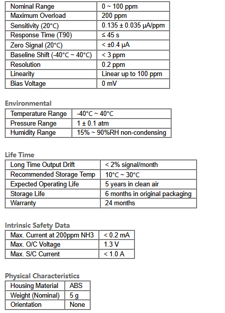 This sensor is designed for the measurement of NH3 concentration in gas phase.