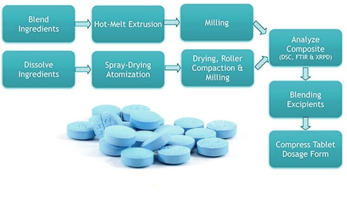 Amorphous solid dispersions can be prepared by either a spray-drying (i.e., evaporation of a solvent solution of the drug and polymer), or by hot melt extrusion (i.e., melting of the drug substance with a polymer followed by co-extrusion). For characterization of solid dispersions, Ascendia uses state-of-the-art analytical sciences such as differential scanning calorimetry (DSC), X-ray powder diffraction (XRPD), FTIR, and other solid state characterization techniques.