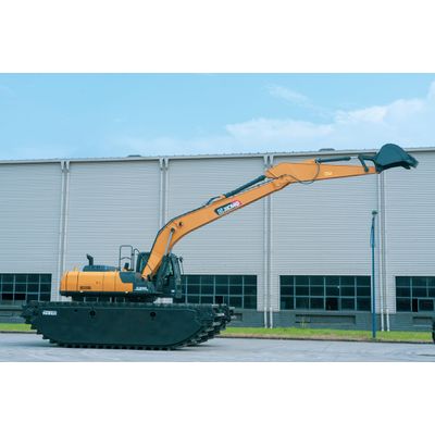 According to our sales data in the past few years, 20ton class amphibious excavators have been the best seller. They are widely used for dredging, landscaping, and deepening of river deltas, etc. RIVER’s customized model of RS215-A pontoon undercarriage can perfectly match 18-22ton excavators. Its standard design allows its independant maximum working depth of within 1.8 meters. Professional in fine machining, River also manufactures and provides alternative long reach booms ranging from 9 meters to 13 meters long.
