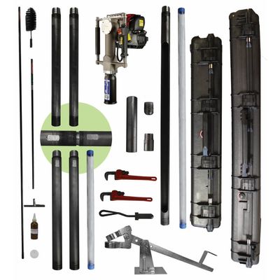 The AMS Gas Powered Core Sampling Kit with gasoline powered Gas Powered REDI Boss Hammer is ideal for obtaining core samples to a depth of 8ft. (2.4m). The complete set contains: Gas Powered REDI Boss Hammer, (1) 4ft. Deluxe AMS Carrying Case, (1) 3ft. Deluxe AMS Carrying Case, GP Slotted Sampler Tube 4ft., (2) GP Upper Extensions 2ft., (2) GP Lower Extensions 2ft., GP Drive Head Adapter, (2) 12in. Pipe Wrenches, Clean Out Spoon, GP Drive Tip, GP Liner Retainer Coupler, AMS Foot Jack, 2in. Foot Jack Shackles (1 Set of 2), 1-1/2in. Core Catcher, Cleaning rods with brushes & T-handle, (4) plastic end caps, (1) plastic liner 1.5in. x 4ft & (1) plastic liner 1.5in. x 2ft.