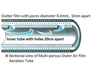 Multi-porous Outer Air Film Aeration Tube is assembled from a inner tube with holes which put on outside air film. The Outer Air Film is replaceable. We can replace Outer Air Film every few months. That makes the aeration keep good condition and the Multi-porous Outer Air Film Aeration Tube will used for long period.