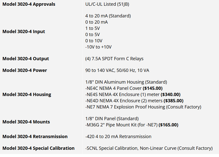 Devar - Model 3020A-4-420 -Analog Level Pump Controller with Linearization Feature and 24VDC Power Output