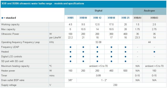 Compact analogue-controlled range of ultrasonic baths providing a high standard of reliable and effective ultrasonic technology.