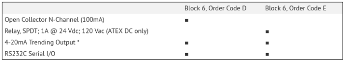 Optional: -40 °F to 500 °F [-40 °C to 260 °C]; remote configuration only