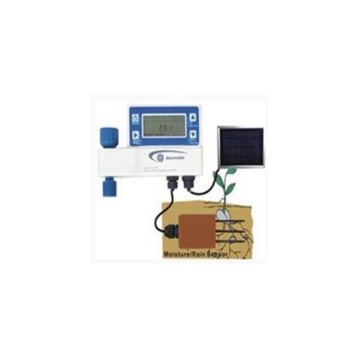 Built in 3/4" Plastic latching valve. Both ends thread are USA hose standard of NH-11.5. Plug in moisture sensor/Rain sensor. Including both "Moisture Control" and "Timer Control" modes, push mode key to switch between the modes. Can be powered by 4xAA Alkaline battery, solar panel with 4xAA rechargeable battery, or 100V to 240V AC adapter.