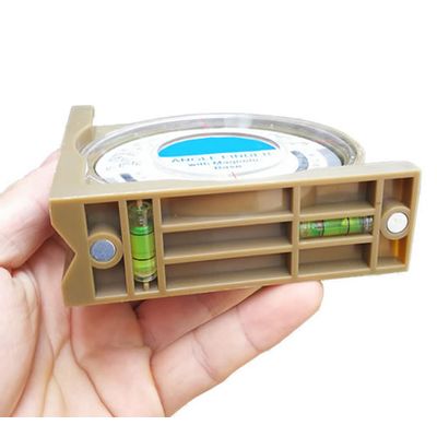 Angle finder with a magnetic base is a device that measures angles, featuring a magnetic base that adheres to metal surfaces. This allows for hands-free operation, especially useful in construction and carpentry. Typically, it has a digital display that indicates the angle measurement in degrees. This tool aids in tasks like setting up machinery, installing fixtures, or aligning parts at specific angles. Advanced models might have features such as a backlight for dim environments and adjustable arms to measure various angle types.
