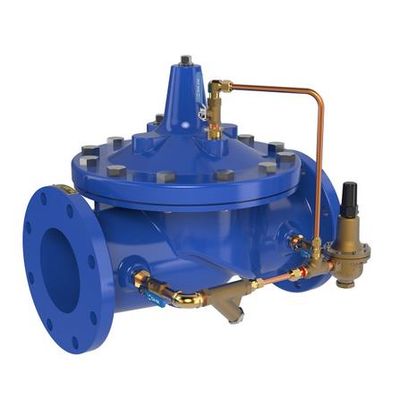 The Cla-Val Model 90-01KO Hytrol Pressure Reducing Valve with Anti-Cavitation Trim automatically reduces a higher inlet pressure to a steady lower downstream pressure, regardless of changing flow rate and/or varying inlet pressure. The valve is equipped with Anti-Cavitation Trim to provide for optimum downstream pressure control while reducing noise and eliminating the damage associated with cavitation.
