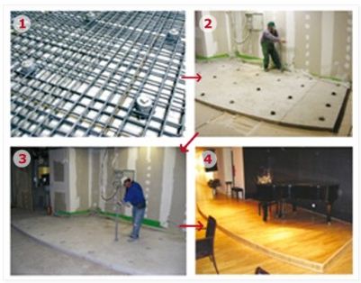 2. Isolate the floating floor from building structure, with a suitable antivibration board, between the floating floor and the wall (e.g. Vibro-strip).