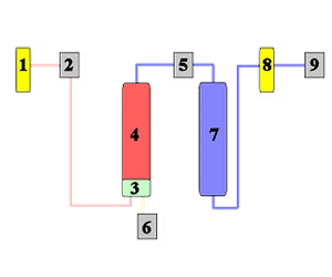 Air from an external source enters the generator via a 0.01-micron filter [1] that removes contaminants and bulk moisture via an integrated auto drain. When the control system assesses that more nitrogen is required, solenoid valve [2] is opened and the pressure is allowed to build in the column [4] containing Carbon Molecular Sieve (CMS) and a residue moisture catcher [3]. This sieve adsorbs the oxygen and leaves the dry nitrogen free to flow into the reservoir [7]. After this point, the Nitrogen is allowed to flow to the application via another 0.01-micron filter [8] and pressure and flow regulators [9].