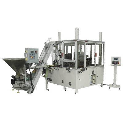 The feeding of components to the print system can be simple or sophisticated depending upon the type of product to be handled, and the production speed required. Typically hoppers and bowl feeds are utilized for smaller components, and inline conveyors or chutes for larger products.