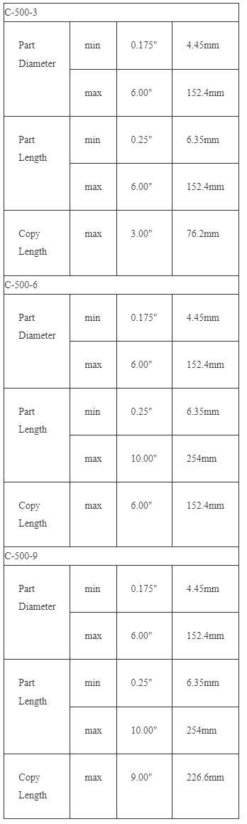 Up to 12" of copy can be printed on parts no more than 12" (304mm) in length and 6" (152mm) diameter. Production speed up to 200 parts per minute.