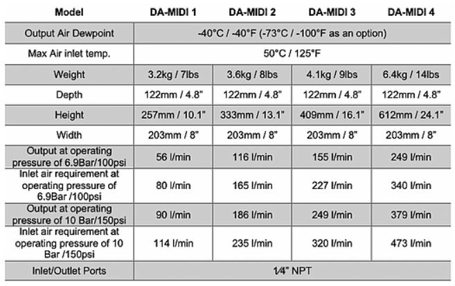 - Output dew points as low as -70°C
