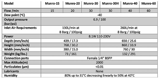 The Munro series of high flow rate Nitrogen generators which is a range of discrete, efficient and modular Nitrogen generators that produce dry nitrogen only when you need it. The Nevis series uses Pressure Swing Adsorption (PSA) technology for superior performance and reliability. The series includes a range of models to cover most applications. When selecting a system, consideration should be given to the required flow rate, purity and delivery pressure. Additionally Apex will be happy to consult with you as to which specific model would suit you.