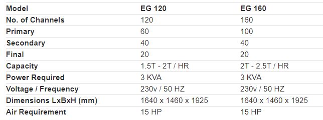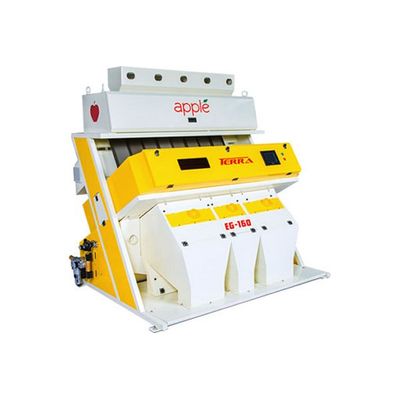 Double view camera technology for accurate results through high speed 2048 pixel imported line scan CCD camera. High speed electronic processing through FPGA. Ultra high speed long life imported ejectors. Optimized illumination system using LED and fluorescent lamps. Specially treated extruded aluminium chutes. User friendly 7" color human machine interface. Imported rodless cylinder for trouble free cleaning. Option for removal of chalky rice. Automatically stops the machine when air pressure is low. Reduced air consumption due to highly precised nozzle design.