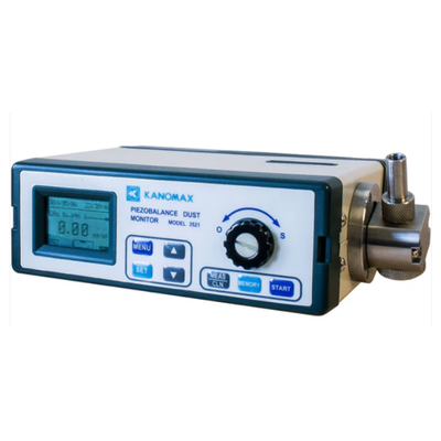 The Kanomax Piezobalance Dust Monitor 3521/3522 is a unique respirable aerosol monitor, providing direct mass concentration of particulates using PIEZOBALANCE technology; ideal especially for oil mist monitoring. The Kanomax 3521 is equipped with 4 and 10µm impactors while the 3522 is equipped with a 2.5µm impactor. Unlike conventional dust meters, which count particles, a piezobalance dust meter like the 3521 or 3522 “weighs” mass concentration of particulates. As an air sample enters the system, it travels through the impactor, which captures and removes larger particulates away from the sample. Smaller particulates become electrically charged and deposited on the piezo-crystal. The total mass of the deposited particulates affects the piezo-crystal’s frequency. Since the change in frequency is proportional to the mass of the particulates, the actual weight of the particulates is obtained.