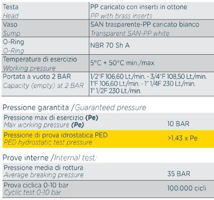 FP2 filter cartridge housings with brass inserts and transparent SAN sump or opaque white sump.