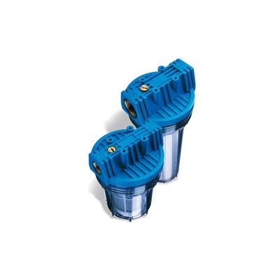 FP2 filter cartridge housings with brass inserts and transparent SAN sump or opaque white sump.