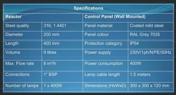 Specially designed for installation in heavy loaded commercial spas and domestic pools. Proven in hundreds of installations to be highly effective for eliminating unwanted chlorine by-products. A high quality product with extremely low running costs.