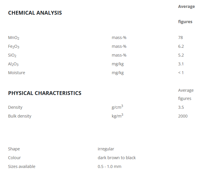 Aqua-mandix is a natural, crushed manganese dioxide without additives and free from contamination. Used as a joker for catalytic removal of dissolved iron and manganese in one filtration step. The product will do a very good job already at pH 6,5 and even in presence of NH4. Aqua-mandix will also remove "parts of" As, Al and H2S if present next to Fe and Mn.