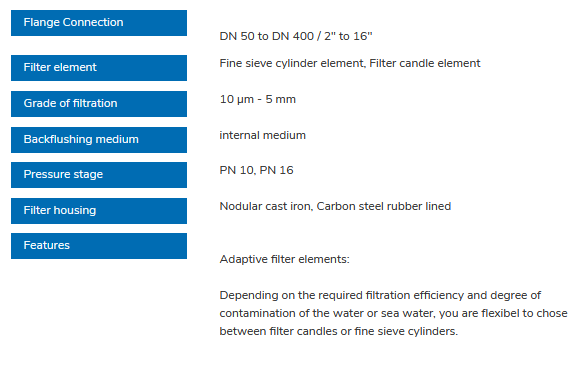 The aquaBoll is an automatic self-cleaning pre-filter for ballast water management systems. The aquaBoll removes organic particles and sediments from ballast water and serves as a solid protection of the ballast water system. The compact automatic filter is embedded in the system between the coarse filters and the chemical or physical disinfection unit. The adaptative filter elements either of candles or of fine sieve cylinders are able to reach the defined precise degree of filtration down to 10 µm. The aquaBoll® is sea water resistant and available either as cast iron or carbon steel rubber line version. Its multi-part housing construction enables a flexible positioning of the connections and an easy maintenance.
