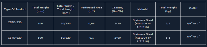 AQUAFLEX Coarse Bubble Tube Diffusers have specifications as below: