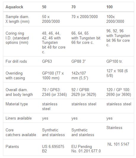 - Off-shore sampling of water bottoms: AquaLock produces long practically undisturbed cores of extremely mixed geology.
