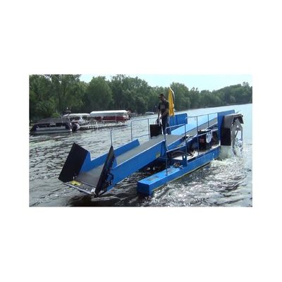 The versatile, shallow draft Aquarius FB-120 Series Skimmer/Harvester features a 4` 0" (1,24 m) wide horizontal collection and/or cutter swath for shoreline collection.